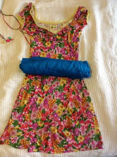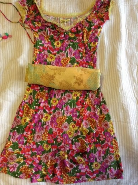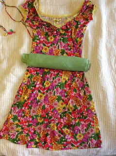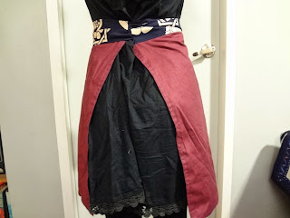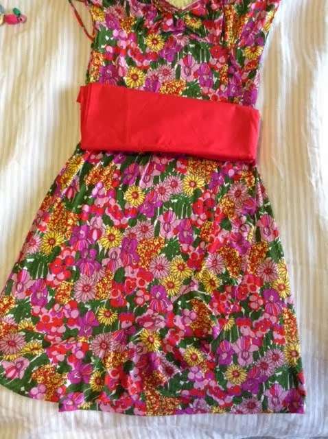 In order to remake this one-piece dress into an apron, I’m thinking to use another fabric as a lining, as well as apron strings and a pocket.