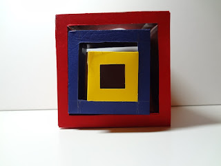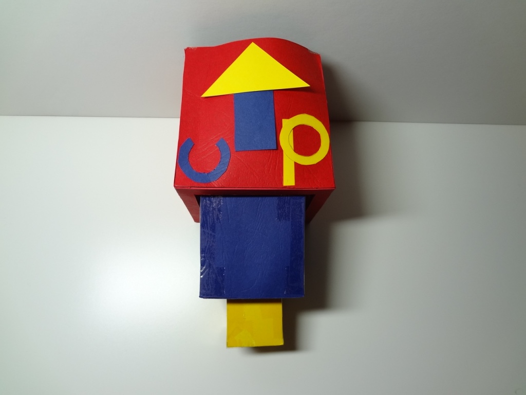 (2)の「Bauhouseの5つの特徴を表現する」では、私は「Geometric shapes, Primary colours, Simple, Easy to mass produce, Functional」の5つを表現しました。