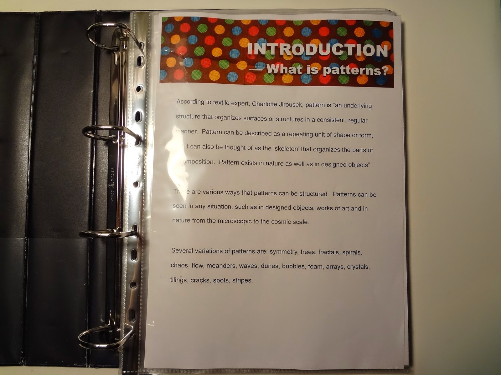 | Pattern research folder |