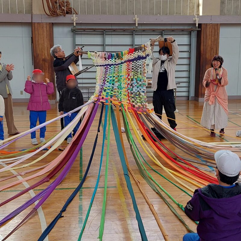 WORKSHOP: GIANT HUMAN WEAVING LOOM AT TAKASU ELEMENTARY SCHOOL/長橋・鷹巣小学校交流事業で巨大人間織り機ワークショップをファシリテート