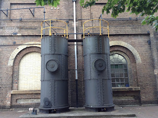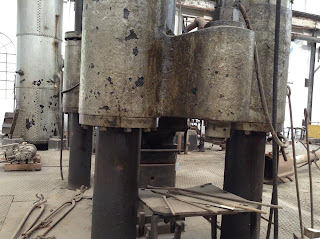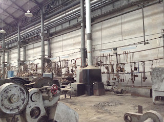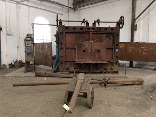 建物の外には、昔使われたのであろう、いろんな形の大きな溶接された機械がゴロゴロ。