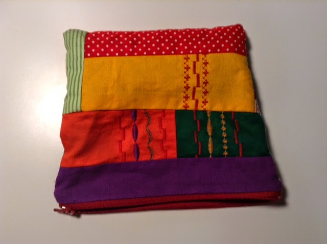 I love stationery and I carry lots of pens and pencils. I had many small pieces of fabric from various sewing projects. Each fabric piece was tiny and not big enough to make something. So, I decided to do a bit of patch-work and made a pencil case.