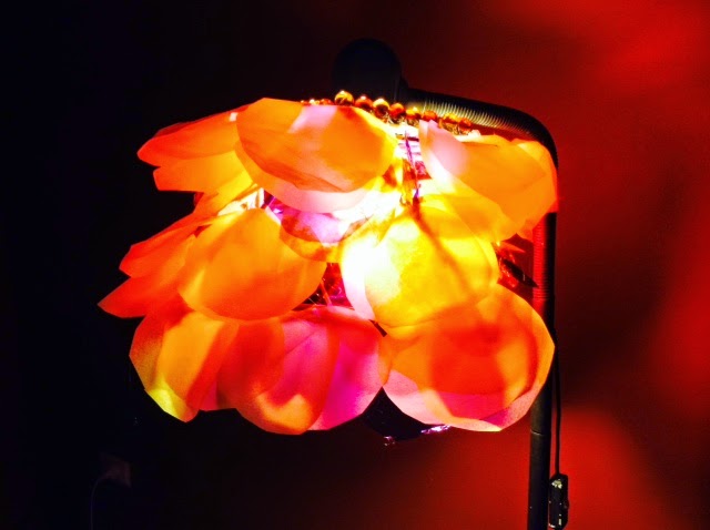 I basically used whatever the materials I had at home–a pack of disposable chopsticks, cellophanes (Red, Orange, Purple), tissue paper (Light pink, Yello), and a glue gun.