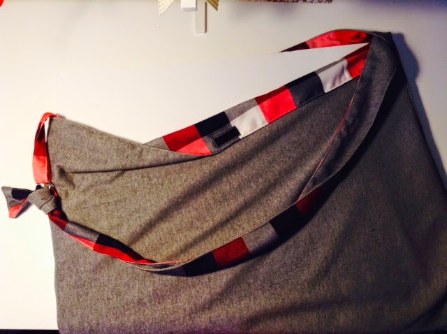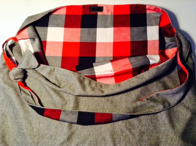 (私の紺色のバッグ: http://yokocv.blogspot.com.au/2014/04/t-square-bag-improved.html )A3サイズのプレゼンテーションボードが数枚入るし、インテリアデザインコースの課題を運ぶのに便利なんです。N君には自分の好きな布を選んでもらいました。外側がグレーのジャージ素材&裏地がチェックの綿布地の組み合わせは自分では絶対に選ばない。。。けど、こうやって他の人の好みが分かるって面白いし新鮮です★