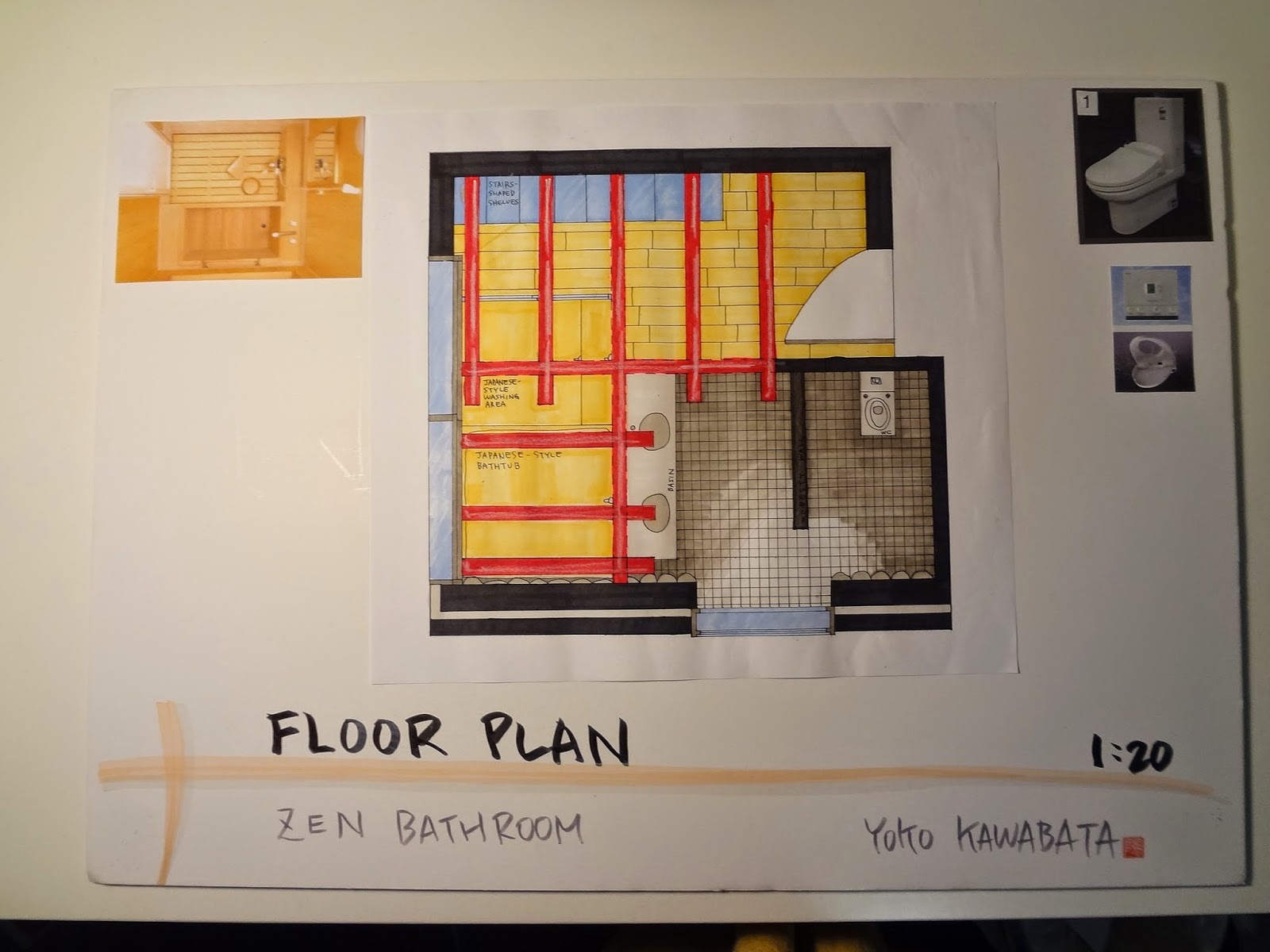 “Your client is a well-travelled business man who has spent a lot of time in Japan. He has approached you to design a bathroom that is practical yet reflects his interest in Japanese gardens and Zen philosophy. The design is to be innovative and contemporary. You may select the bathroom functions to be incorporated , but as it is the only bathroom, at a minimum the design must include a shower, basin, and WC. In designing your space you are to consider the ergonomic requirements and the passage/circulation needs for contemporary bathroom. your research project will act as a resource document that supports your design solution”