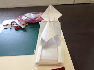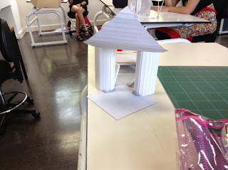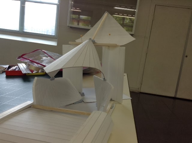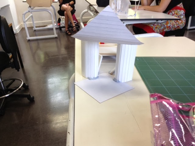 先々週にOpen space、先週はEnclosed spaceを作りました。今週は、その2つをつなぐスペースを作る課題です:「Using 1 set of materials create a space that has a quality of transition joining the 2 spaces」。